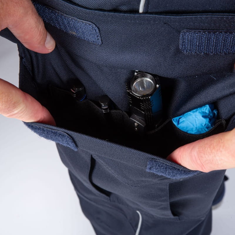 - Kieszonka na rękawiczki jednorazowe. Przemyślana kieszeń w górnej części spodni – szybko wyjmujesz i już możesz działać.